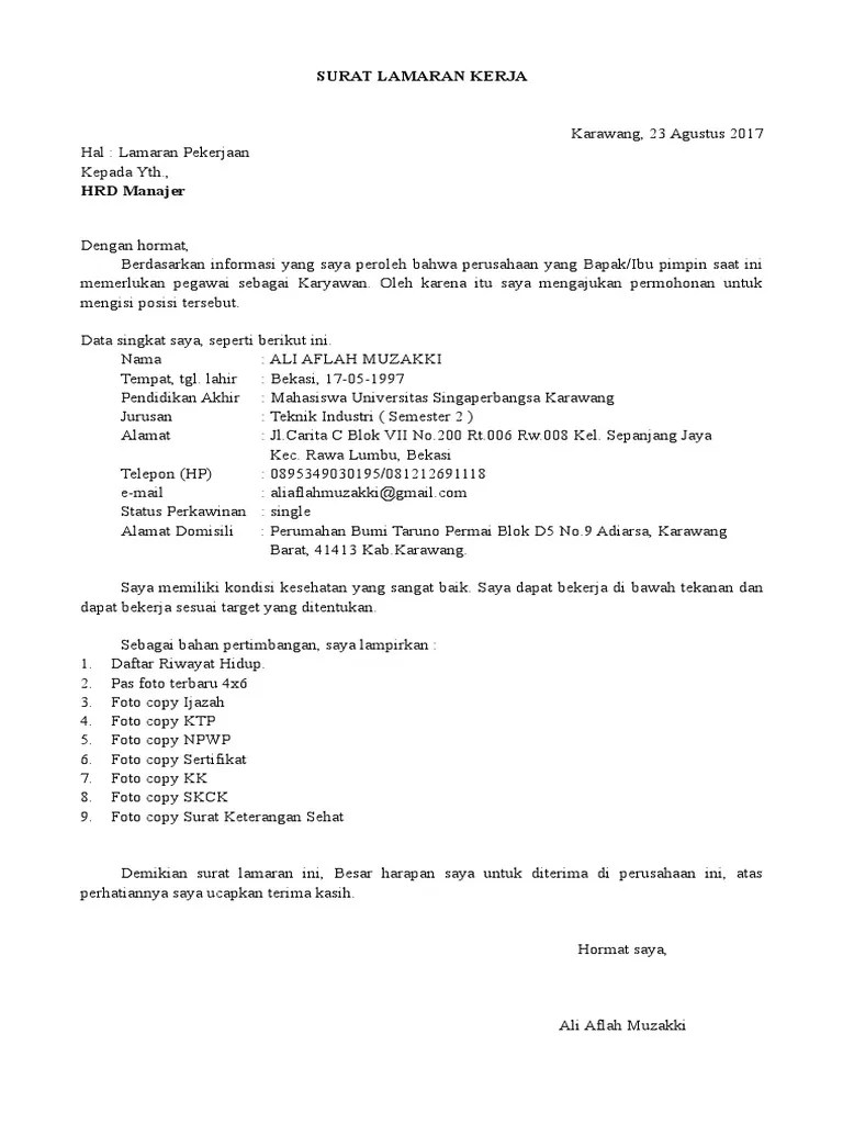 Contoh surat lamaran kerja yang baik dan benar, dijamin lolos seleksi hrd.