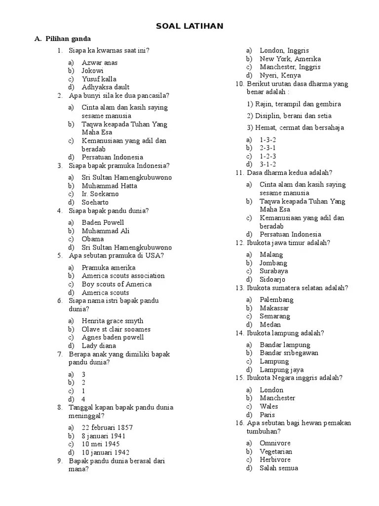 Soal Pramuka Siaga Pilihan Ganda : Contoh Soal Pramuka Pilihan Ganda Beserta Jawabannya Sedang : Latihan soal pilihan ganda bab pramuka.